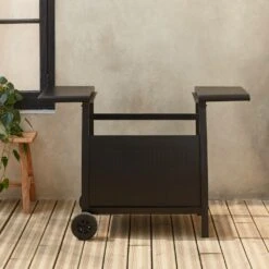 Desserte Extérieure Noire En Acier Modulable Pour Plancha Avec Deux Roues