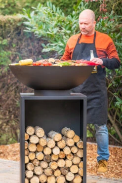 Brasero Forno Firebasket En Acier – 3 Pieds – Finition Noire – Grille ChromĂ©e – H56 X L45 X P45 Cm