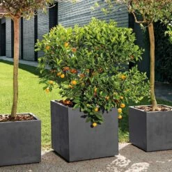 Pot Cube Millenium Plastique RĂ©serve D’eau & Roulettes Anthracite 49cm