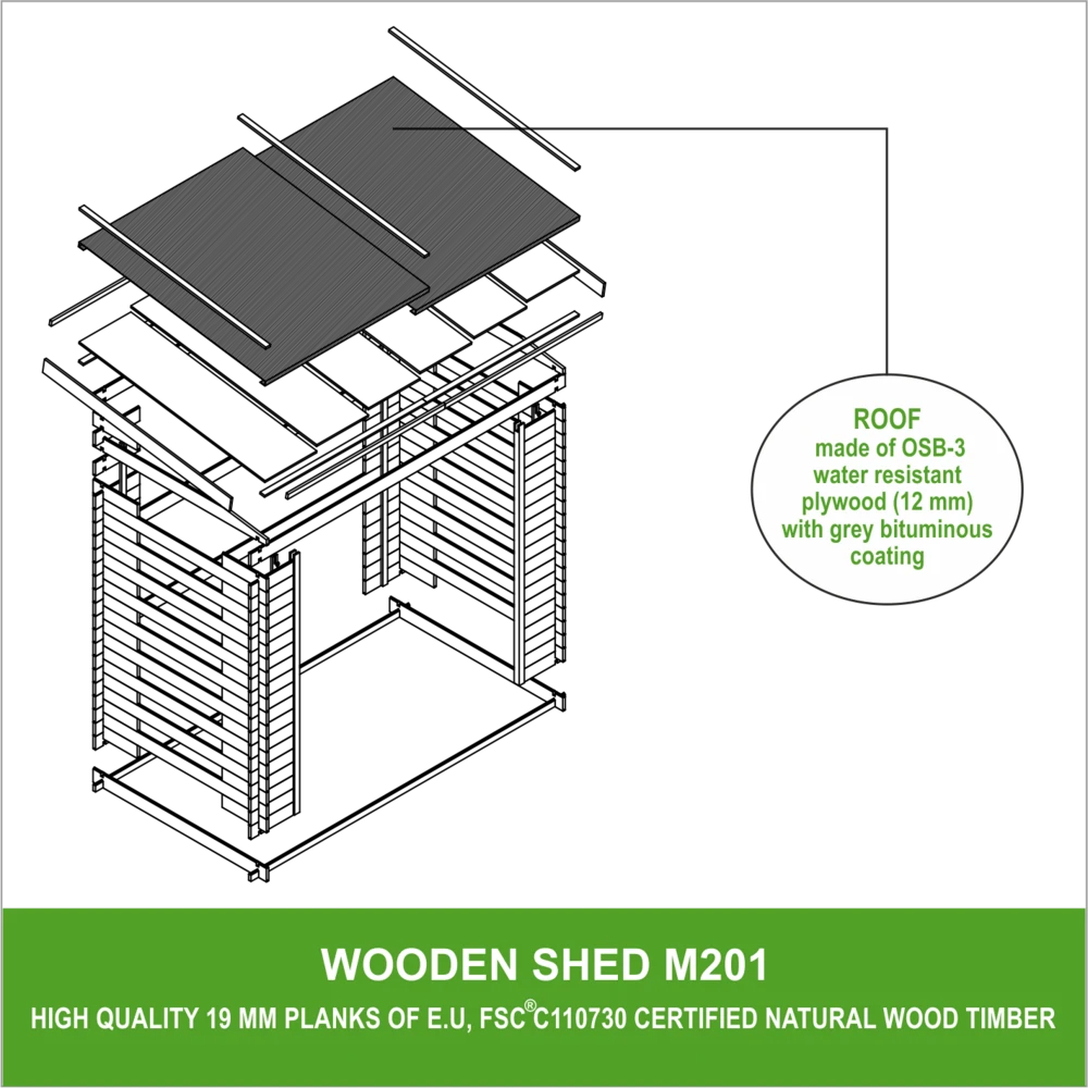 – toit en contreplaqué résistant à l’eau osb-3 (12 mm) incl. Revêtement de bitume gris
