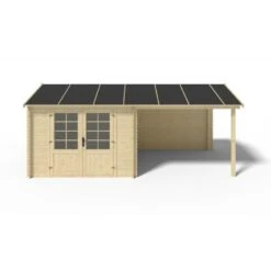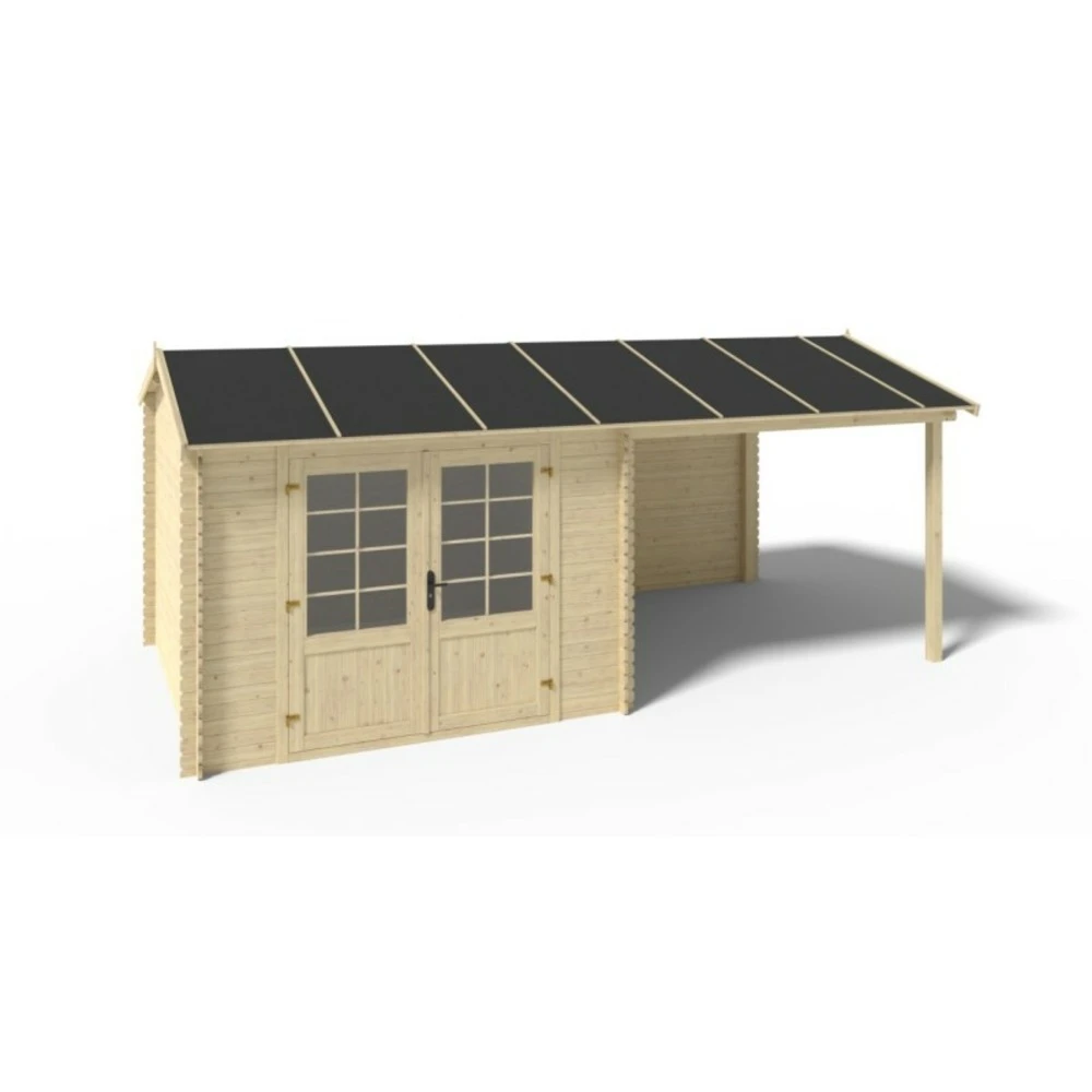 chalet de jardin en bois dom582 de altanka p.s.a. Est fait de bois de haute qualitĂ©. Les dimensions sont suivantes : 5,70m de large et 2,95m de profondeur ce que garantie beaucoup d’espace Ă l’intĂ©rieur.