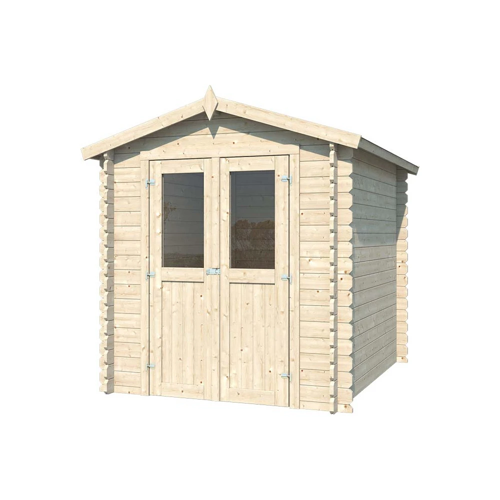 informations complĂ©mentaires : abri en madriers mi-bois provenance europe du nord , biseautĂ©s , simples rainures , bruts Ă lasurer de 28 m/m , porte double mi- vitrĂ©e , charnières , target pour la fermeture de la porte , dĂ©passement de toiture vers l’avant de 10 cm , voliges de 18 m/m , feutre bitume noir , hauteur des murs 187 cm , hauteur au faitage 214 cm , vitrage verre