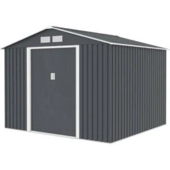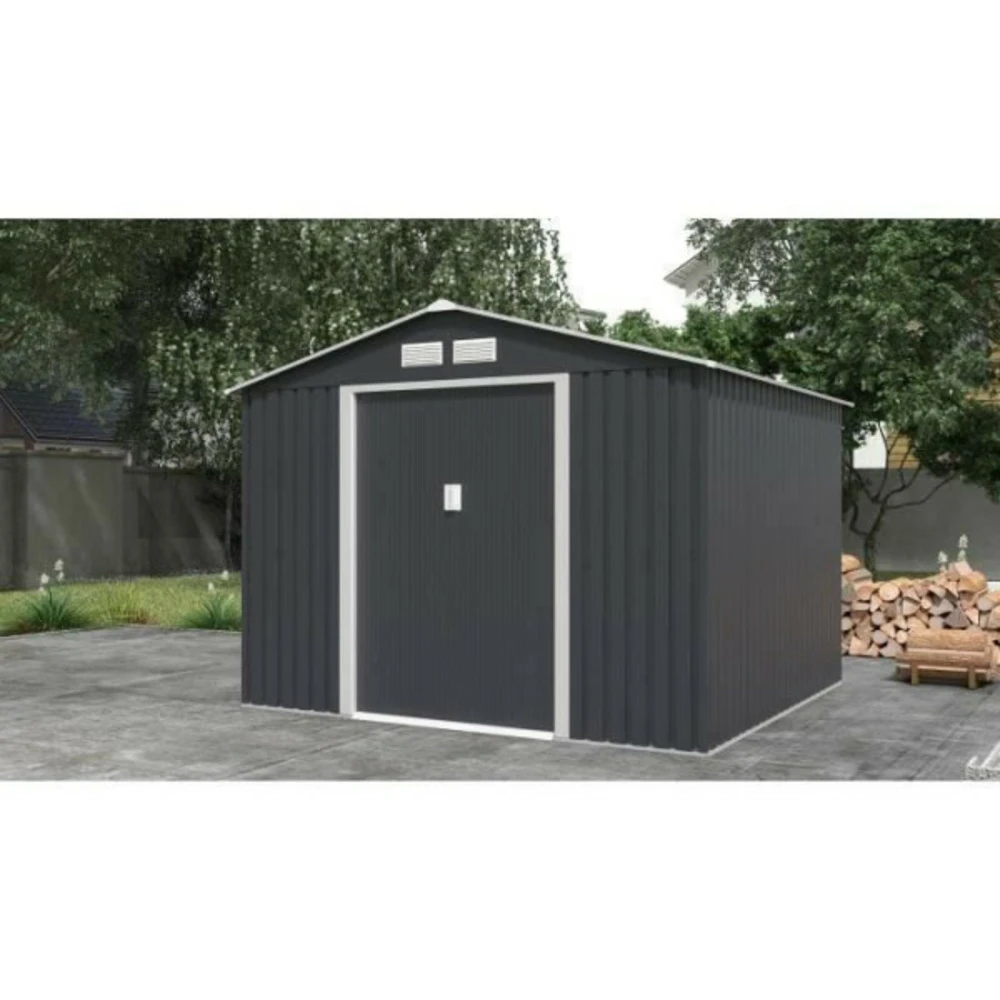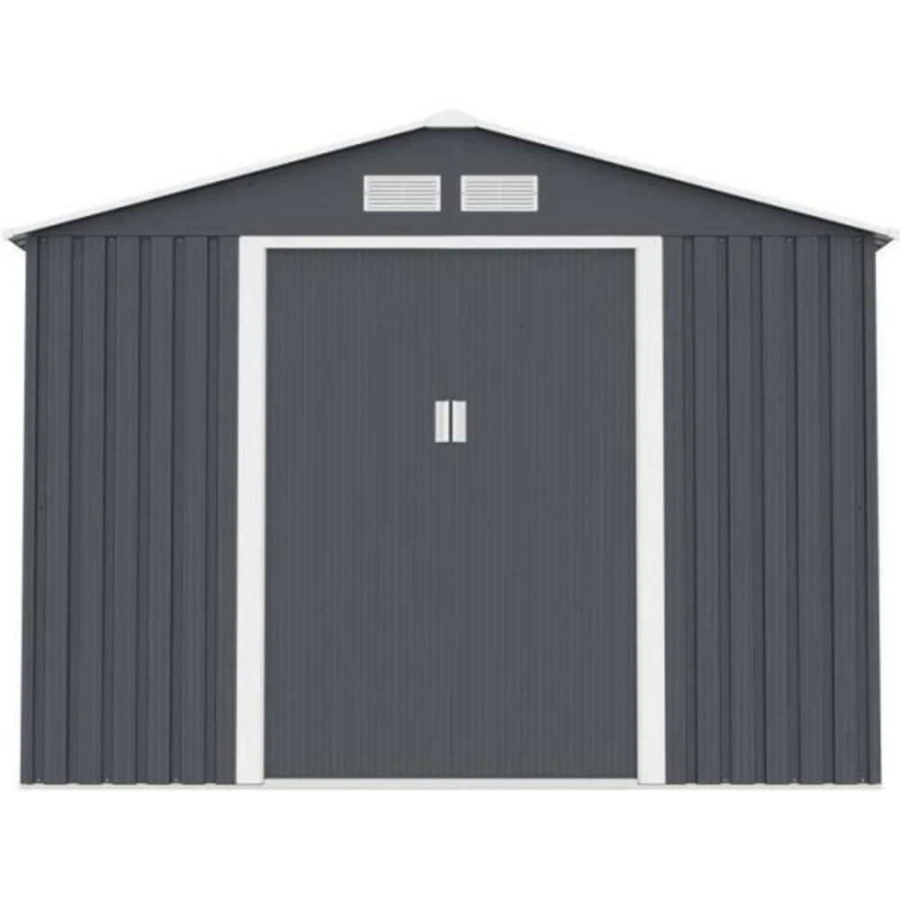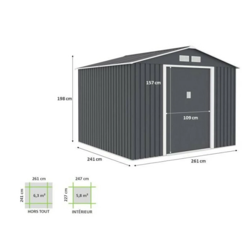 Abri de jardin en acier galavanisé avec kit d’ancrage inclus – 6.3m² – avec 2 portes coulissantes et une serrure