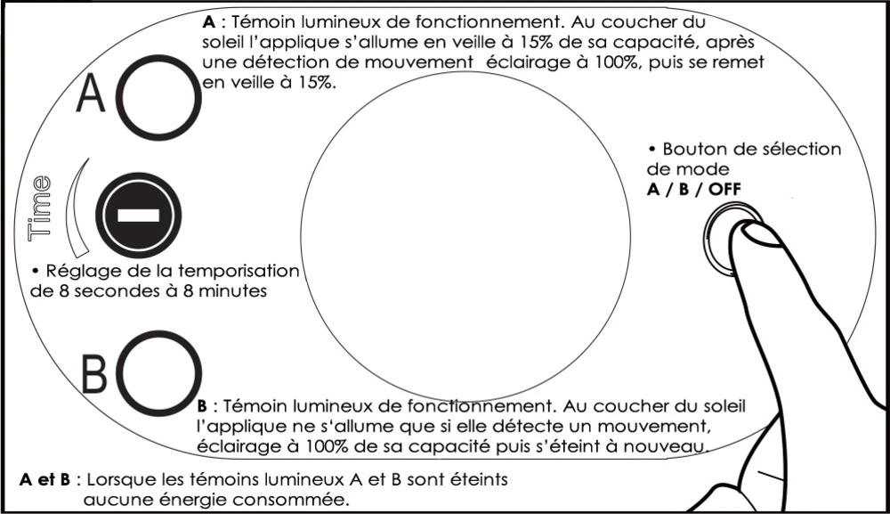 Applique solaire design elegant/pi54/ik08/3000°k/170 lumens/faisceau 120°/panneau solaire 2w/batterie li-ion 2000 mah-3,7v/aluminium-polycarbonate/detecteur de mouvements/2 modes differents/panneau et eclairage orientable