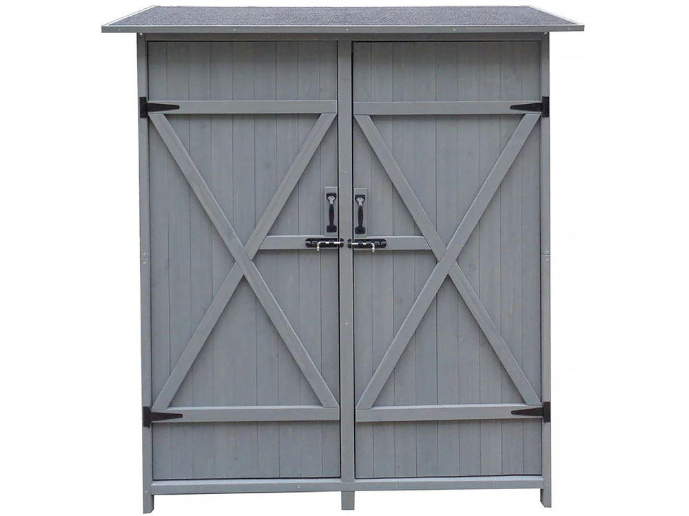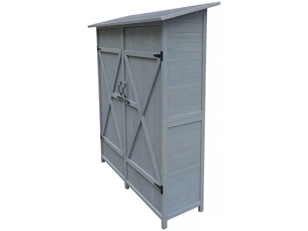 Magnifique armoire de jardin pour un jardin parfaitement rangé. Cette armoire de rangement de jardin compacte offre un espace supplémentaire pour ranger vos outils de bricolage ou de jardinage. Elle est recommandée pour un usage en extérieur le bois est traité contre l’humidité et les intempéries. Aussi, le toit étanche vous permettra de garder vos objets au sec. Pratique, la double porte vous facilité l’accès à votre espace de rangement. Les battants se ferment à l’aide de targettes en acier. A l’intérieur, vous pouvez facilement ranger les petits objets sur les 2 étagères. La structure en sapin massif vous assure une rigidité de la structure et une longévité dans le temps. Notre armoire nécessite peu d’espace et fera partie intégrante du décor de votre jardin.