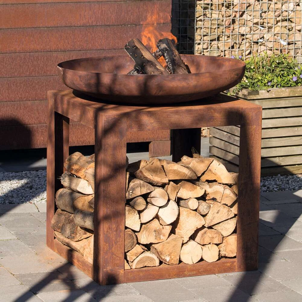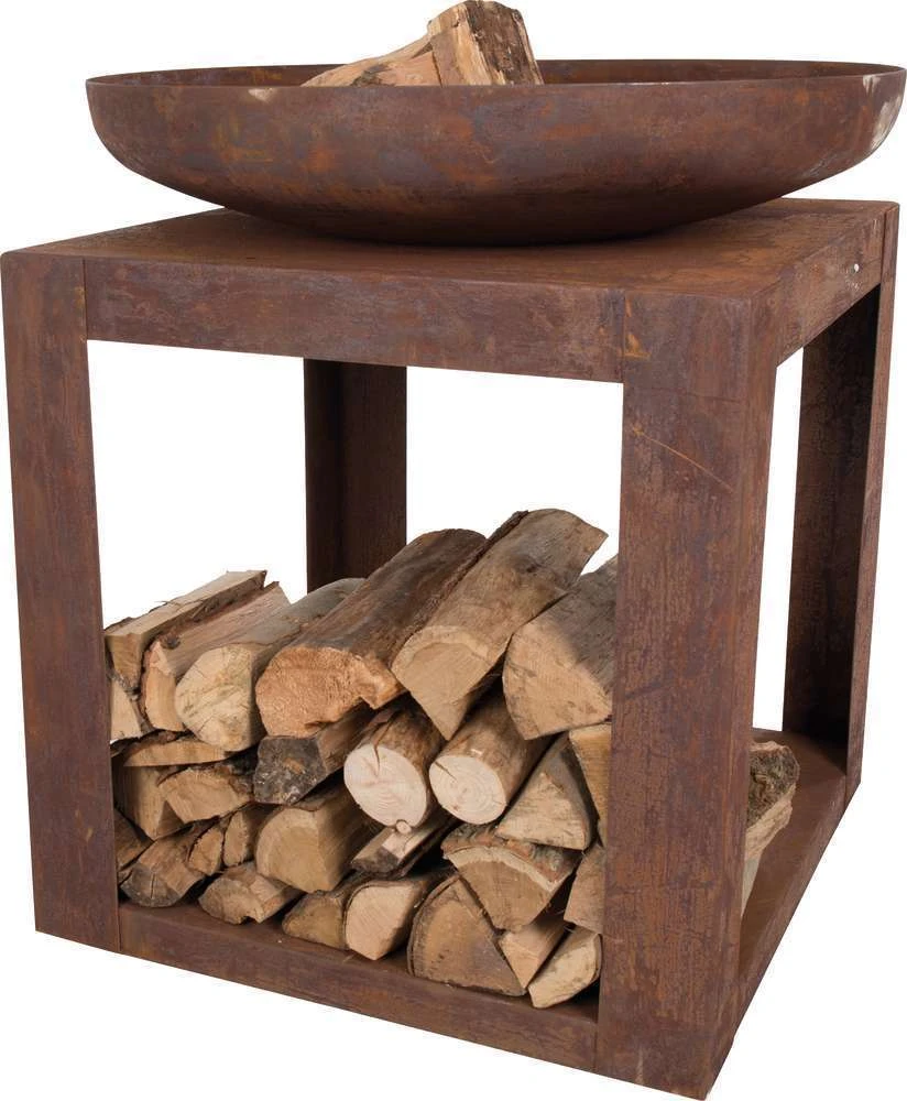 Comme nous, vous aserez sĂ©duits par ce brasĂ©ro très pratique avec son espace pour ranger votre bois de chauffage. Brasero au bois Selki Industrial en acier – 80x80x85 cm.