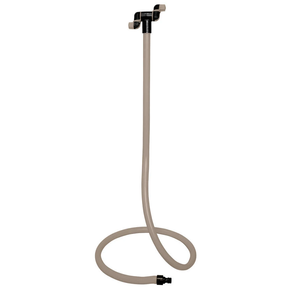 Ce brumisateur sur pied a 2 têtes orientables à 360°. Il offre un panaché de 3 coloris : vert anis, taupe et framboise. Le brumisateur sur pied permet de se rafraichir à l’endroit voulu sans aucune installation au préalable. Les 2 buses fines permettent une pulvérisation de l’eau sous forme de brouillard très fin et léger. La sortie de l’eau par les buses produit un choc thermique au contact de l’air chaud, ce qui va réduire la température de l’air ambiant de presque 10° quand elle est supérieure à 30°. L 39.00 l 38.00 H 80.00 cm