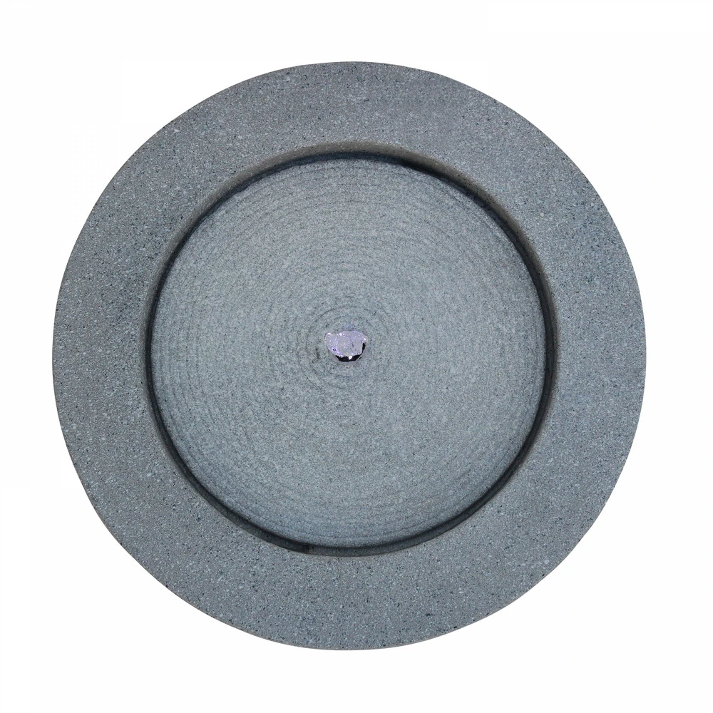 fontaine en forme de bol pour la décoration intérieure ou extérieure. Intégralement fabriquée en polyrésine et fibre de verre, la fontaine de jardin ronde présente un rendu granit naturel grâce à des projections de poudre de pierre. Le ruissellement de l’eau s’opère en circuit fermé, alimenté par une pompe haute qualité qui s’installe aisément. Simple d’utilisation, la fontaine de jardin génère un fond sonore agréable qui invite à la détente. L’éclairage fourni par la led blanche créé une ambiance feutrée et met en valeur la fontaine et son environnement. La fontaine en forme de bol est un accessoire déco qui possède une excellente durée de vie : elle est résistante aux rayons uv et aux intempéries. Qu’elle soit installée dans la maison ou dans le jardin, elle ne risque pas de s’altérer, et ne requiert pratiquement aucun entretien. La fontaine de jardin en forme de bol mesure 60 cm de diamètre et 30 cm de hauteur, elle est fournie avec un câble électrique de 5 m de long pour la pompe.