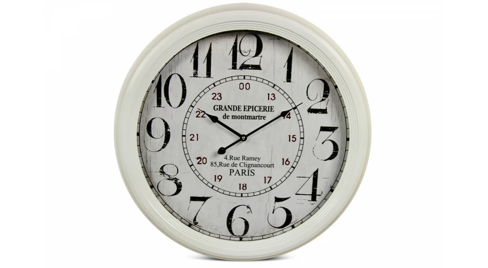 certains Ă©lĂ©ments dĂ©coratifs apportent un joli cachet. C’est le cas de cette magnifique horloge ancienne murale grande Ă©picerie de montmartre.