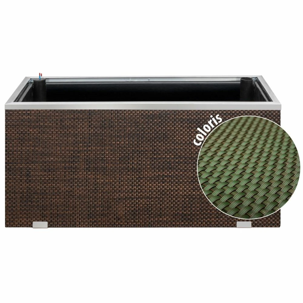 jardinière en résine tressée avec réserve d’eau et cadre en aluminium 95 x 39 x 43 cm
