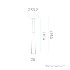 le lampadaire paquita d’extérieur, de la collection paquita, fabriqué par newgarden. Il est composé d’un pied de forme pyramidale, supportant un cylindre plat conçu en polyéthylène.