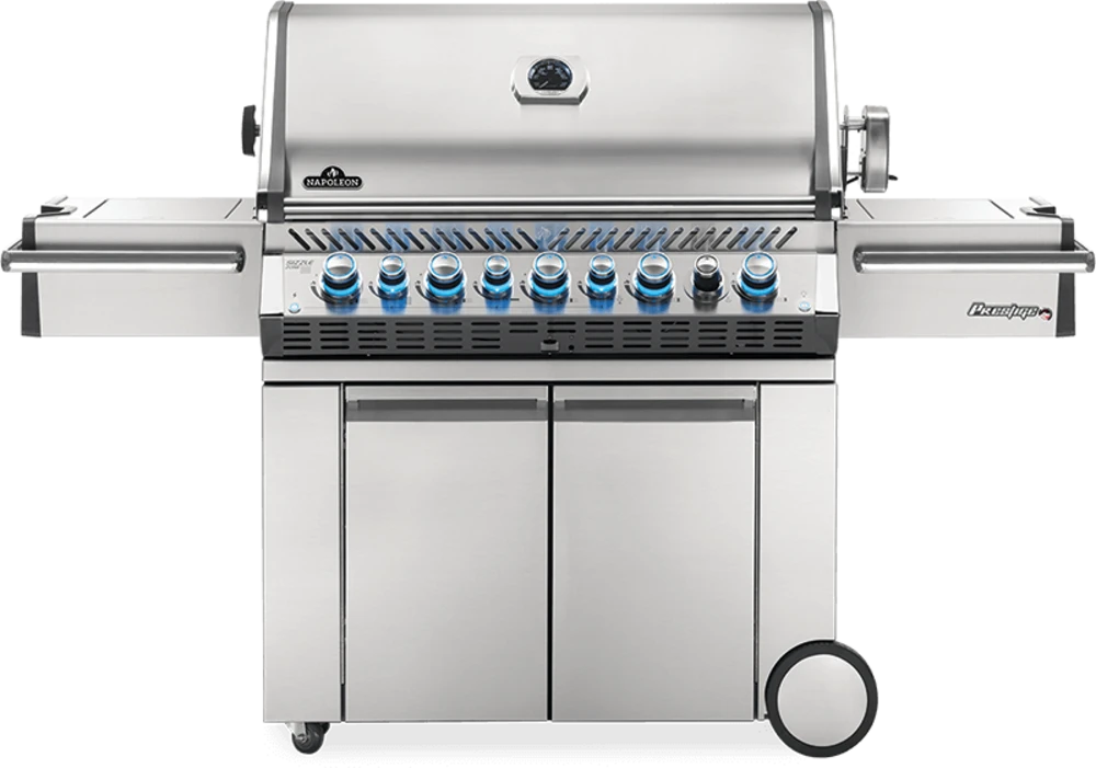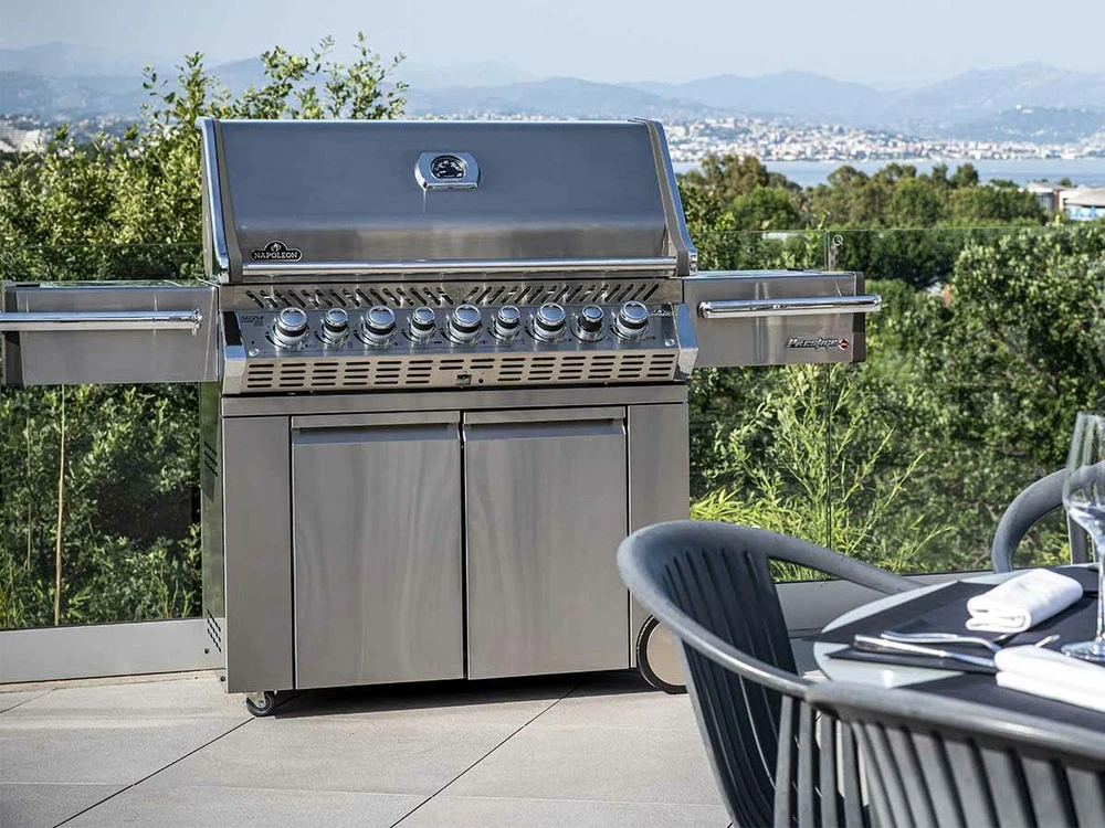 Barbecue à gaz napoléon prestige pro 665 rsib avec 5 brûleurs et 2 brûleurs infrarouges (arrière pour les rôtis et un brûleur latéral sizzle zone™)de niveau professionnel, le barbecue à gaz napoléon prestige pro 665 rsib est équipé de 6 brûleurs, d’un brûleur arrière infrarouge et d’un brûleur infrarouge sizzle zone™ latérale.dimensions générales : – dimensions (l x l x h) : 195 x 65 x 130 cm – hauteur totale avec couvercle ouvert : 142 cm – hauteur de la grille de cuisson : 93 cm – profondeur : 65 cm – poids : 150 kg – surface de cuisson principale : 94 x 46 cm – surface sizzle zone™ de réchaud : 37 x 24 cm – puissance : 29,7 kwles avantages du barbecue napoléon prestige pro 665 rsib- 1 brûleur infrarouge latéral sizzle zone™ – grilles de cuisson en acier inoxydable de 9,5 mm wave™ – couvercle pivotant lift ease™, luxueux avec sa hauteur confortable et peu encombrante, jauge de température chromé accu-probe™ – 5 grands brûleurs tubulaires durables en acier inoxydable (4 kw) – tablettes latérales en acier inoxydable premium avec porte-gobelet intégré et compartiment intégré pour glaçons / marinades avec une planche à découper, porte-serviettes et crochets à ustensiles chromés – panneau de commande en acier inoxydable avec le système d’allumage jetfire™ – boutons de commande avec l’éclairage de led safety glow™ pour un barbecue élégant dans la nuit – grand bac récupérateur de graisse accessible par l’avant – les étagères, l’éclairage, les crochets de couverts et un décapsulateur se trouvent à l’arrière des portes qui glissent doucement – deux grandes roues en caoutchouc faciles à manier – fumoir intégré pour les copeaux de fumaison pouvant être retiré pour un remplissage facile et possède son propre brûleur – éclairage de proximité- les boutons de commande led spectrum night light™ peuvent changer de couleur et de luminosité / allumage piézo:non / collection:prestige pro / convient pour:plus de 12 personnes / couleur:inox / crochet(s) porte-accessoires:oui / cuve:fonte aluminium / dimensions (l x l x h):195 x 65 x 130 cm / dimensions colis (l x l x h):122 x 75 x 138 cm / fonctions:grill / four / réchaud / garantie:10 ans / grille:acier inoxydable / grille d’attente:non / hauteur de cuisson:93 cm / marque:napoléon / matière(s):inox / nombre de brûleurs:5 et + / poids:150 kg / puissance (kw):31 kw / réchaud latéral:oui / récupérateur de graisses:oui / roulettes de déplacement:oui / surface de cuisson:94 x 46 cm / tablettes latérales:oui / thermomètre intégré:oui / type de gaz:propane