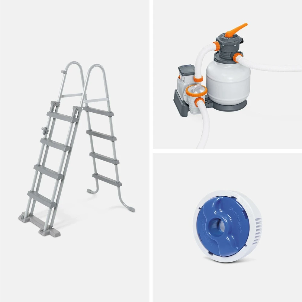 • fournie avec pompe de filtration à sable et diffuseur chimique chemconnect