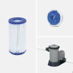 fournie avec pompe de filtration, filtre à cartouche, bâche de protection, échelle et diffuseur