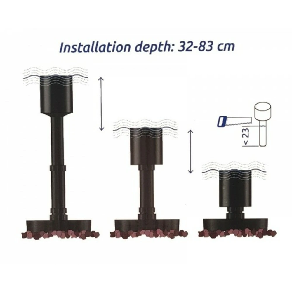 Débit de la pompe conseillées entre 5000 et 16000 l/h pour bassin de jardin de 40m2 de surface maximum.