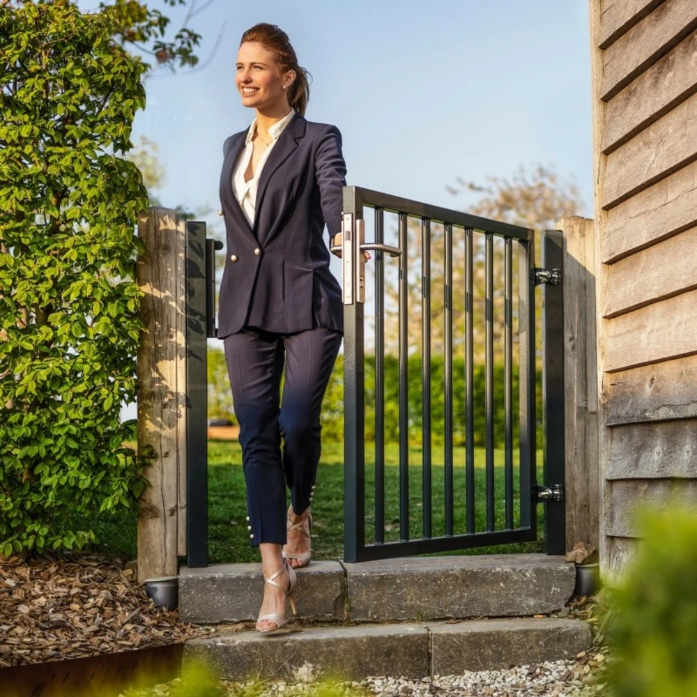 Le portillon de jardin barreaudé est la solution idéale et passe partout pour la sécurisation et la clôture de votre résidence ou bien de votre local professionnel. sa composition en acier le rend robuste. facile à poser grâce à tous les accessoires inclus. Il est réversible donc adaptable. il est disponible en plusieurs hauteurs et différentes couleurs. nous proposons le portail barreaudé assorti au portillon. caractéristiques techniques : matière : acier. traitement : thermolaquage. passage : 1 m. passage utile : 1100 mm. dimensions hors-tout : 1220 mm. hauteurs disponibles : 1m, 1m20, 1m50, 1m80. hauteur de poignée : 837,5 mm pour hauteur 1m, 992,5 mm pour hauteurs 1m20, 1m50 et 1m80. ouverture : 180°. Section du cadre: 40 x 40 mm. largeur du cadre : 1000 mm. Section des poteaux : 60 x 60 mm. longueur de poteau selon hauteur : 1600 mm, 1800 mm, 2100 mm, 2400 mm. barreaux : diamètre 25 mm. type de pose : à sceller. scellement : 550 mm. réversible : oui. poteaux inclus. accessoires inclus : serrure encastrée, canon européen (3 clés), 2 gonds avec fixations, poignée, gâche de réception, deux poteaux carré 60 x 60. poignée et gond en acier inoxydable. couleurs disponibles : vert, gris anthracite. motorisable : non. Garantie : 5 ans. le portillon est aussi décliné en portail passage 3m et 4m. conseils de pose : montez d’abord la poignée. puis montez la gâche de réception sur le poteau. installez les gonds sur le poteau porteur.