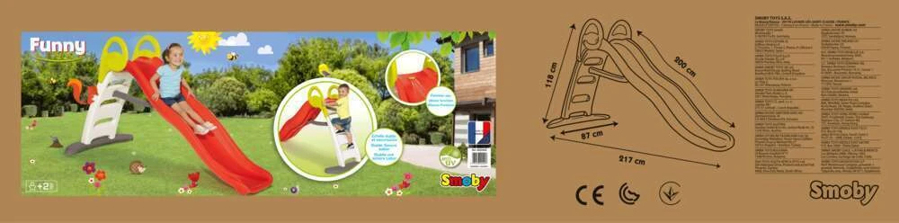 Les enfants passeront des journĂ©es entières Ă s’amuser et Ă rigoler en glissant sur ce toboggan Funny ! Sa pente de glisse en vague amusera les petits et les plus grands sur une longueur de 2 mètres. Et lorsque les journĂ©es deviennent plus chaudes, raccordez un tuyau d’arrosage sous la glisse pour crĂ©er une cascade d’eau et ainsi rafraichĂ®r les petits. D’une grande stabilitĂ© grâce Ă son large pied et d’un Ă©chelle avec des marches antidĂ©rapantes, ce toboggan Funny vous permet de n’avoir aucune inquiètude quant Ă la sĂ©curitĂ© de vos enfants. Dimensions : L. 217 x l. 87,5 x H. 118,2 cm.