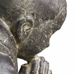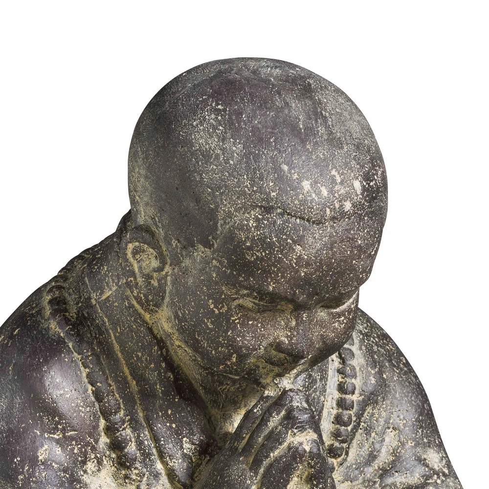 statue de moine bouddhiste en mĂ©ditation, rĂ©alisĂ©e en pierre de fonte naturelle. La statue de moine en pierre grise est idĂ©ale pour dĂ©corer la maison ou le jardin : posĂ©e sur un meuble ou au sol, elle se mĂŞle harmonieusement avec son environnement. La statue de jardin en pierre reprĂ©sente un moine en train de mĂ©diter dans la position du lotus et contribue Ă crĂ©er une atmosphère reposante dans un esprit zen. La statue de moine assis en tailleur est d’abord moulĂ©e en pierre reconstituĂ©e, puis pressĂ©e Ă la main par un sculpteur professionnel qui lui donne une finition patinĂ©e pour un style authentique. Chaque pièce est donc unique, avec de lĂ©gères variations de couleurs et de taille. La statue de moine pour jardin pèse 18,5 kg et mesure environ 35 x 37 x 47 cm. Elle ne craint ni le gel ni les intempĂ©ries et peut ĂŞtre utilisĂ©e en extĂ©rieur tout au long de l’annĂ©e. La statue de moine en mĂ©diation en pierre naturelle ne requiert aucun traitement.