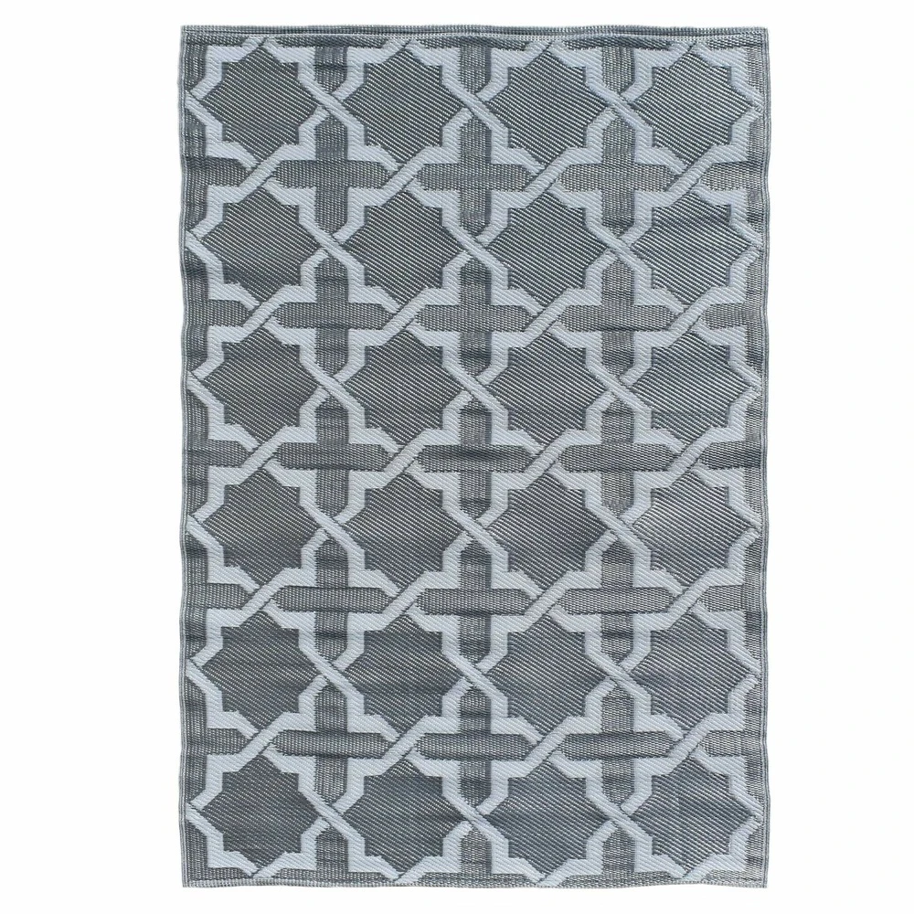Habillez votre extérieur avec ce tapis outdoor aux motifs graphiques. Des impressions en forme de croix et de motifs graphiques. . Celui-ci est en plastique tressé recto/verso. . Couleur peps et ensoleillé de quoi donner un air de vacances à votre espace outdoor. Jouez avec son style graphique en ajoutant du mobilier en rotin, une lanterne en osier… Avec ce tapis, laissez parler vos envies d’évasion !. Pendant la saison froide, laissez votre tapis bien au chaud dans un endroit sec. Nos tapis extérieur en polypropylène sont recyclables, résistant aux uv et à la pluie. . Caractéristiques :. Dimensions : 120 x 160 cm, 150 x 220 cm et 180 x 280 cm . Coloris : gris. Composition : 100% polypropylène – 400gr / m2 – résistant aux uv. . Vendu à l’unité