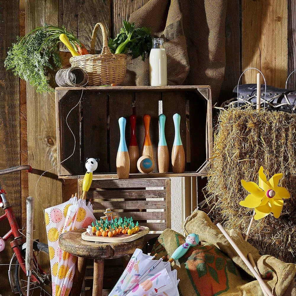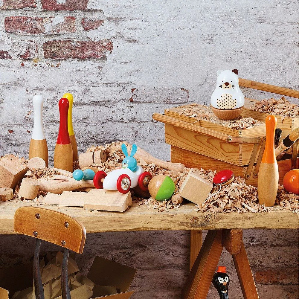un jeu de quilles en bois fabriqué en france par la marque vilac. Référence 4033g.