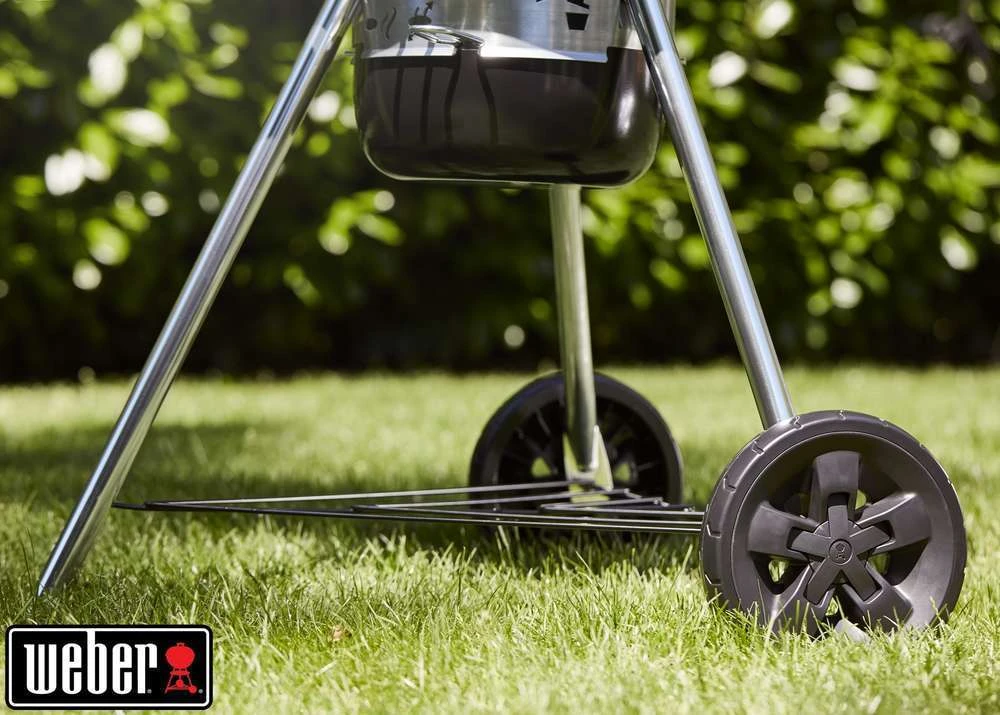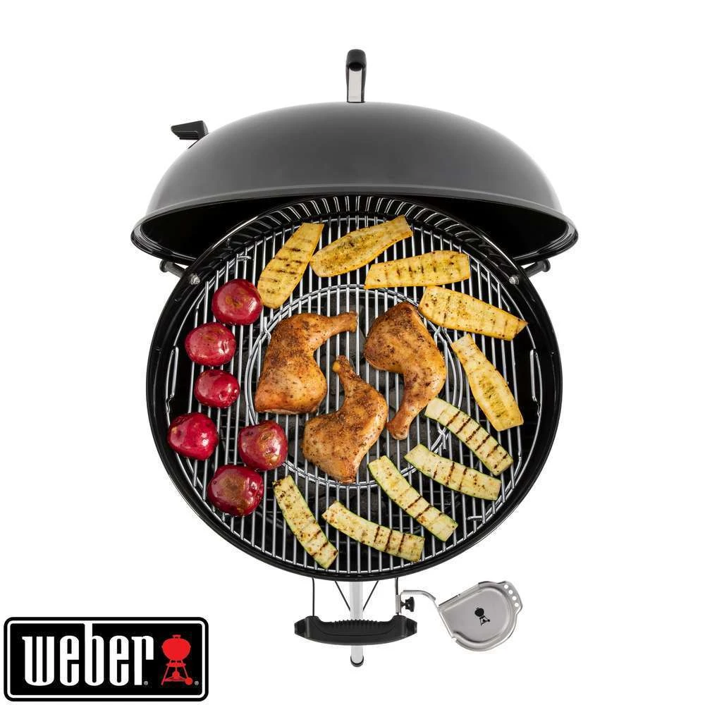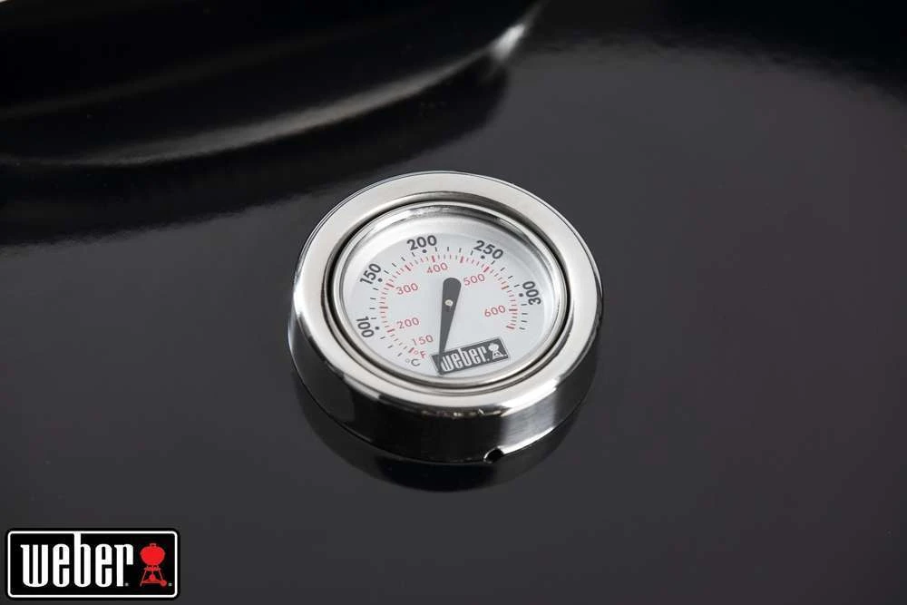 Ce barbecue Weber au charbon de bois Master-Touch GBS E-5750 met à votre disposition tous les éléments et fonctionnalités pour faire de vous le roi ou la reine des après-midis grillades : il dispose ainsi d’une cuve et d’un couvercle en acier émaillé, d’une grille de cuisson Gourmet BBQ System en acier chromé articulée pour ajouter facilement du combustible lors de la cuisson. Intégré au couvercle, le thermomètre garantit une excellente cuisson. Clapet d’aération en aluminium pour une bonne circulation d’air avec poignée à isolation thermique. La structure du barbecue est également renforcée avec des roues en plastique thermodurci qui résistent aux intempéries ainsi que des crochets prote-ustensiles intégrés à la poignée de la cuve. Dispose d’un système de nettoyage One-Touch en acier inoxydable (pour vider facilement les cendres et régler la température) avec cendrier amovible. Le système d’aération permet de réaliser des fumages et cuissons basses températures. Porte-couvercle pour maintenir le couvercle lors de la cuisson. Bol doseur de briquettes qui permet un dosage parfait de celles-ci. Permet de cuir instantanément suffisamment d’aliments pour 10 convives.